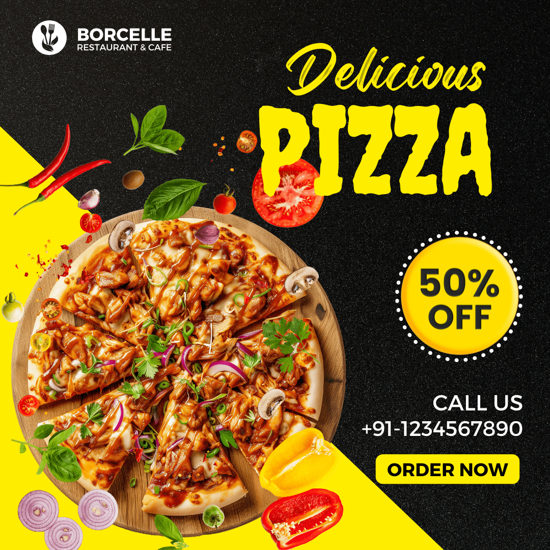 Yellow Black Delicious Pizza